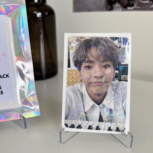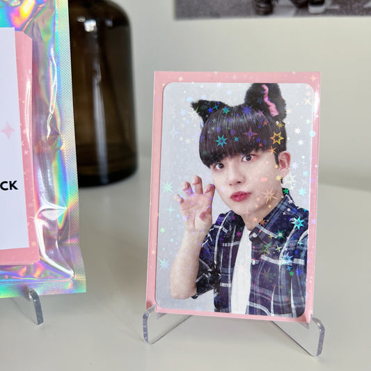 ⟡ Why choose between colour and sparkle when you can have both? Our coloured holographic sleeves are here to make your photocard collection shine brighter than ever!