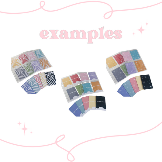 ⟡ Plus, don’t forget to check out our custom binder fillers! Create your very own unique design to make your binder truly one-of-a-kind. Just upload your artwork, and we’ll bring your vision to life!