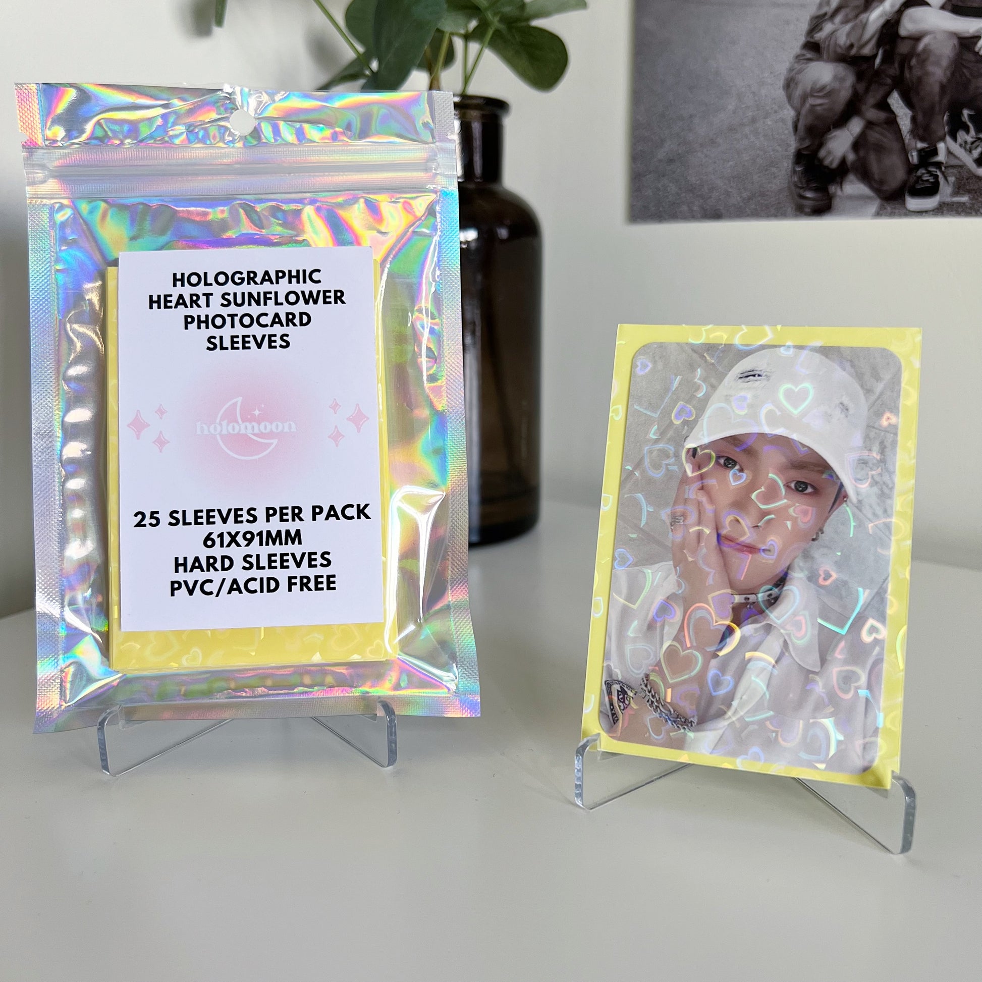 Fundas holográficas para tarjetas fotográficas con diseño de girasol y corazón (paquete de 25)